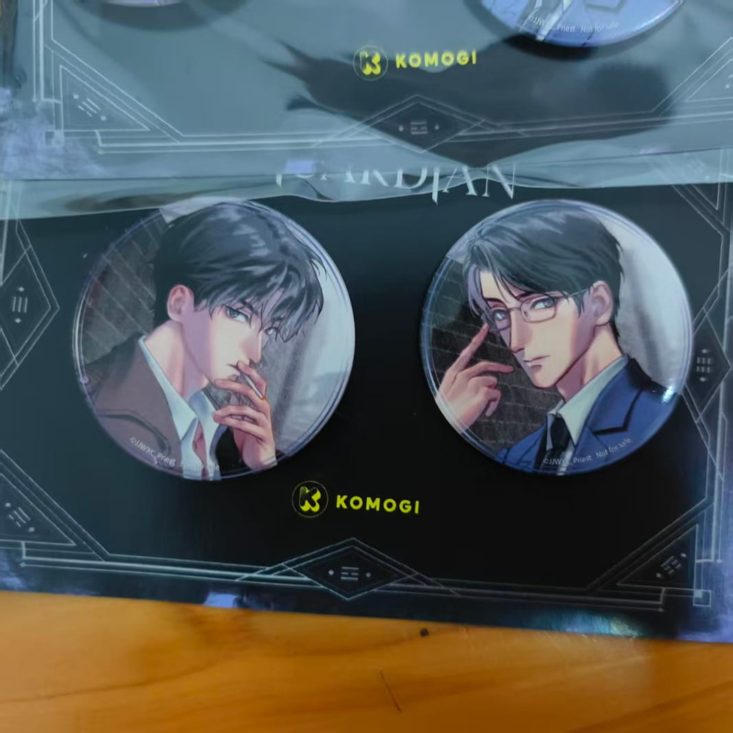 Comme vous pouvez le voir sur l'image ci-dessous, on avait d'abord fait un échantillon avec un point de colle pour fixer les deux badges sur le carton, mais ça ne tenait pas bien.